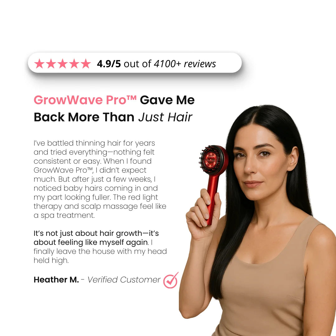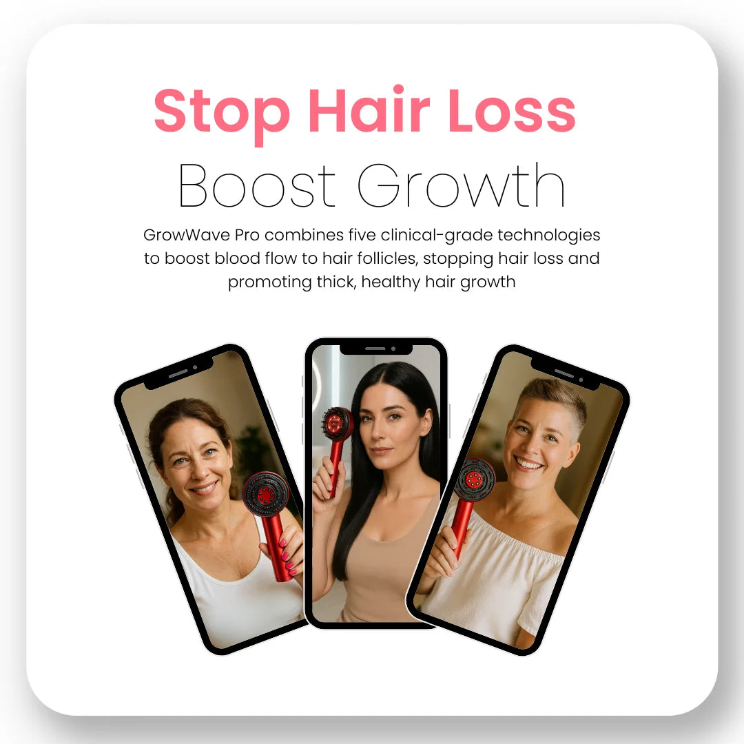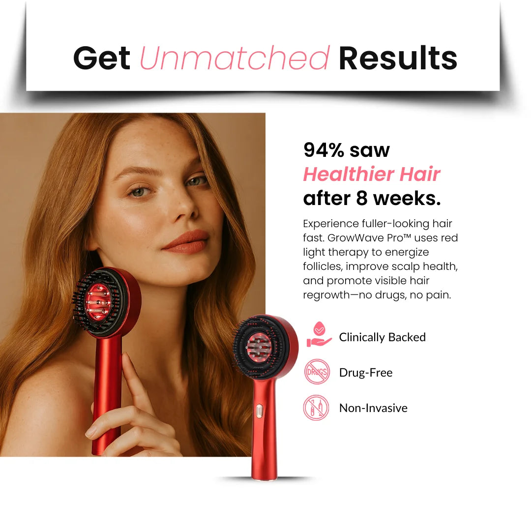 Die meisten Haarpflegegeräte versprechen Ergebnisse – nur wenige halten diese auch. GrowWave Pro kombiniert fortschrittliche Rotlichttherapie mit Kopfhautmassage und Serumabgabe für kraftvolles, sichtbares Nachwachsen.