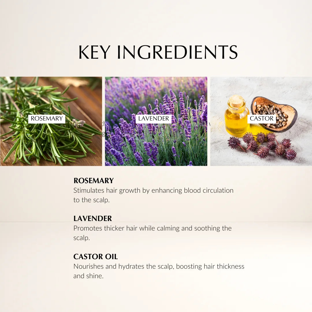 Unsere Formel mit reinem Rosmarinöl und anderen natürlichen Extrakten versorgt Ihr Haar mit wichtigen Nährstoffen ohne aggressive Chemikalien. Das sorgt für sanfte Pflege und effektive Ergebnisse für alle Haartypen.
