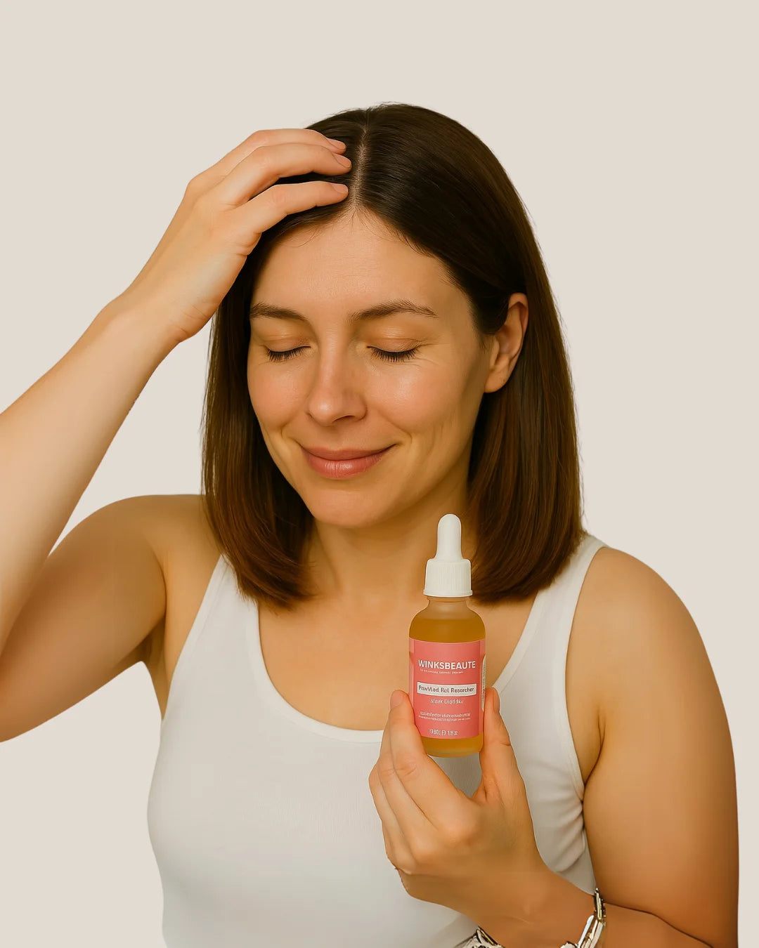 Unser Öl nährt und hydratisiert die Kopfhaut tiefenwirksam und lindert Trockenheit und Schuppenbildung. Dies schafft optimale Bedingungen für gesundes und vitales Haar.