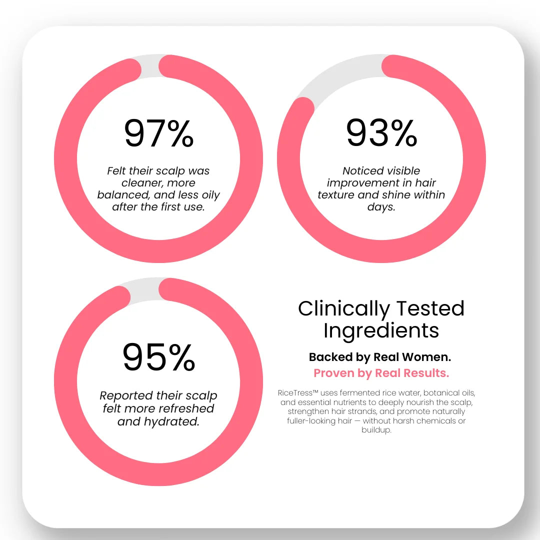I’ve struggled with thinning hair for years, but RiceTress has given my scalp a fresh start. My hair feels softer, stronger, and I finally see less breakage after every wash.
